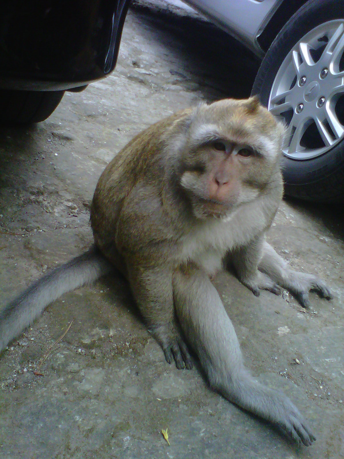 Selanjutnya, kita ke daerah Tawang Mangu, mau ke Grojogan Sewu, air terjun yang harus ngelewatin 1000 anak tangga dulu baru bisa kelihatan. Dan ternyata, bukan 1000 anak tangga deh, tapi 1250 anak tangga. Pertamanya kita nurunin 1250 anak tangga, liat air terjun, jeprat jepret foto, anak2 pada pesen sate, trus naik lagi 1250 anak tangga, beli keripik2 untuk oleh2, trus cabut deh. Di tempat ini merupakan bukti bahwa manusia dan monyet bisa hidup berdampingan. Yeah, banyak banget monyet disana.
